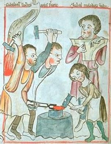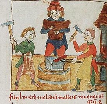 malleorum sonitu et cordarum extensione percussa. [III, 16/1] Non è possibile dire chi per primo sovrappose consapevolmente il racconto di Iubal con quello di pitagora. Una delle fonti più antiche è forse l'Historia scholastica (1160) di Petrus Comestor: ...