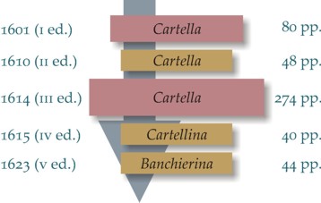 È probabile che l'aggiunta della seconda parta abbia reso insufficienti le 8 pp. dell'otterno a per le pagine prefatorie, da qui l'aggiunta del quaterno (16 pp. non numerate). La carta inserita fra quaterno e otterno permette di implementare gli errata (che infatti ricominciano la numerazione sulla nuova pagina): ulteriore indizio della carta aggiunta è la chiamata in fine quaterno che rimanda a 3 pp. dopo.