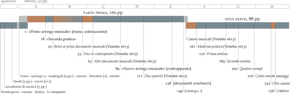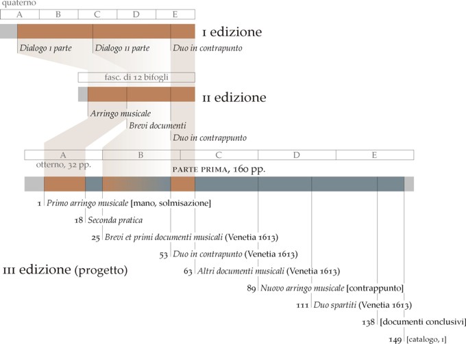 Già questo primo progetto di iii ed. era pensato come 'prolungamento' della i ed. (e non ripensamento). L'impianto Arringo|Documenti|Duo si ripropone a partire da p. 63 (Documenti|Arringo|Duo) dove si tratta del contrappunto. La giustapposizione di quella che viene concepita come una nuova opera (tanto da essere detta «xxxvii»), preceduta da una ristampa dei Canoni a 4 (pubblicati a Milano in data imprecisata), è spiegata nella Scusa che appare sulla prima pagina dell'otterno a: