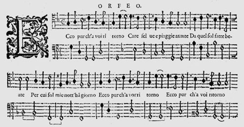 Così si presenta la partitura della prima edizione dell'Orfeo: