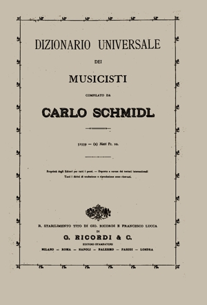 1887-90 - I edizione Carlo Schmidl, Dizionario universale dei musicisti, Milano: Ricordi, 1887-1890. |