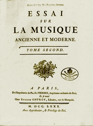 1780 - I edizione Jean-Beniamin de La Borde, Essai sur la musique ancienne et moderne, 4 voll., Paris: Ph.-D. Pierres, 1780. |